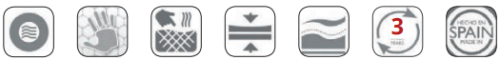 CARA 1: Supracell Visco, material termosensible de célula abierta. Reacciona a la temperatura corporal, ajustándose de manera óptima a nuestro cuerpo, aumentando la superficie de apoyo y reduciendo los puntos de presión, lo que facilita la circulación sanguínea. Su estructura celular abierta permite la libre circulación del aire y transpiración, manteniendo un descanso saludable (5 cm Supracell Visco en cara superior).